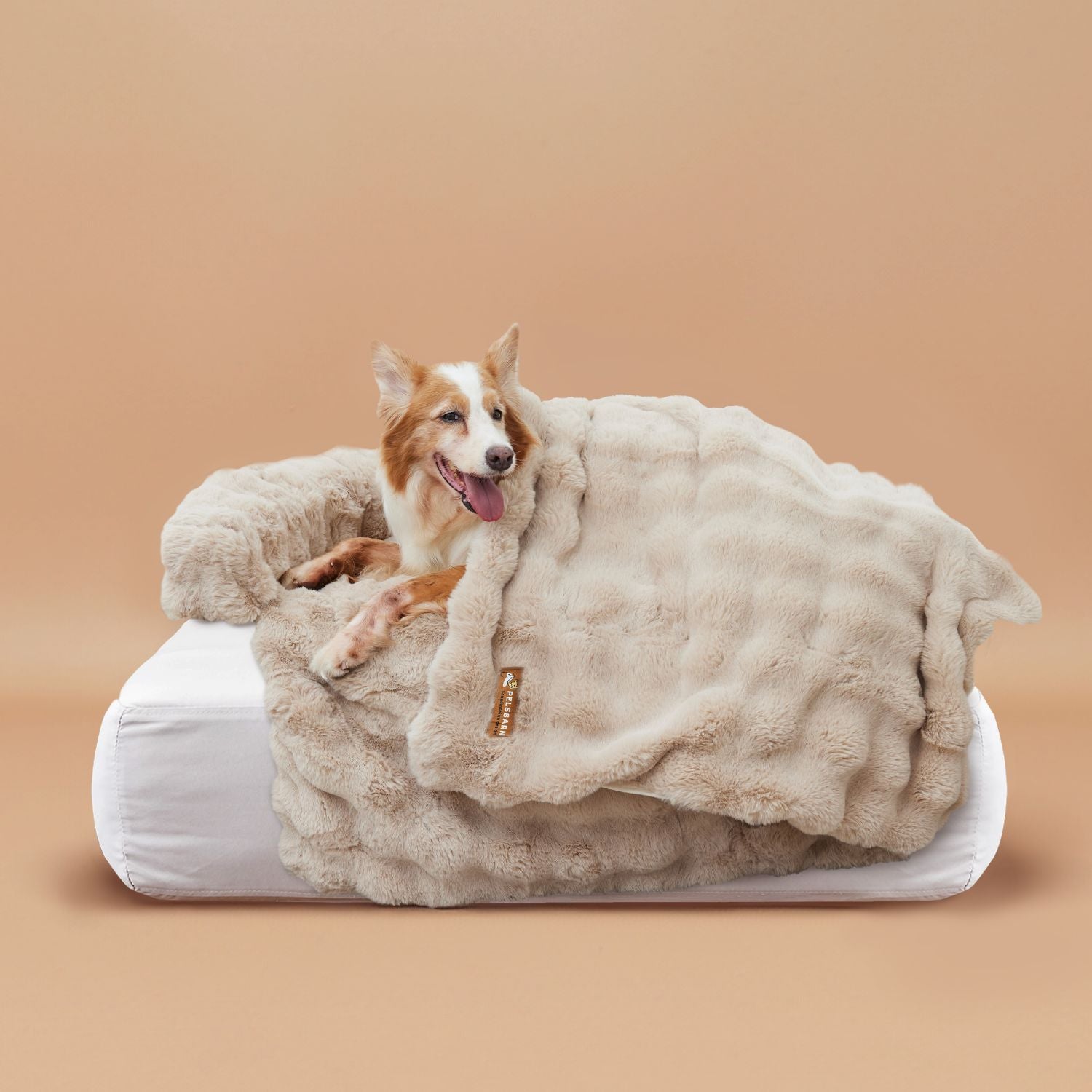 Den är så mjuk! Jag önskar att vi hade köpt den tidigare eftersom min hund inte kan få nog av den. Hon har alltid varit så kräsen när det kommer till hundbäddar, men hon hoppade direkt ner i den här!