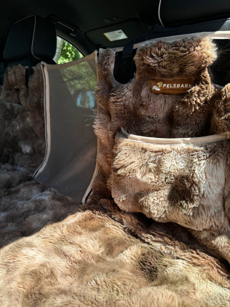 Det Lyxiga Heltäckande Bilsäteskyddet kombinerar en plyschig, sammetsmjuk yta med snygg design och praktiska funktioner som inbyggda fickor för förvaring av husdjurstillbehör.