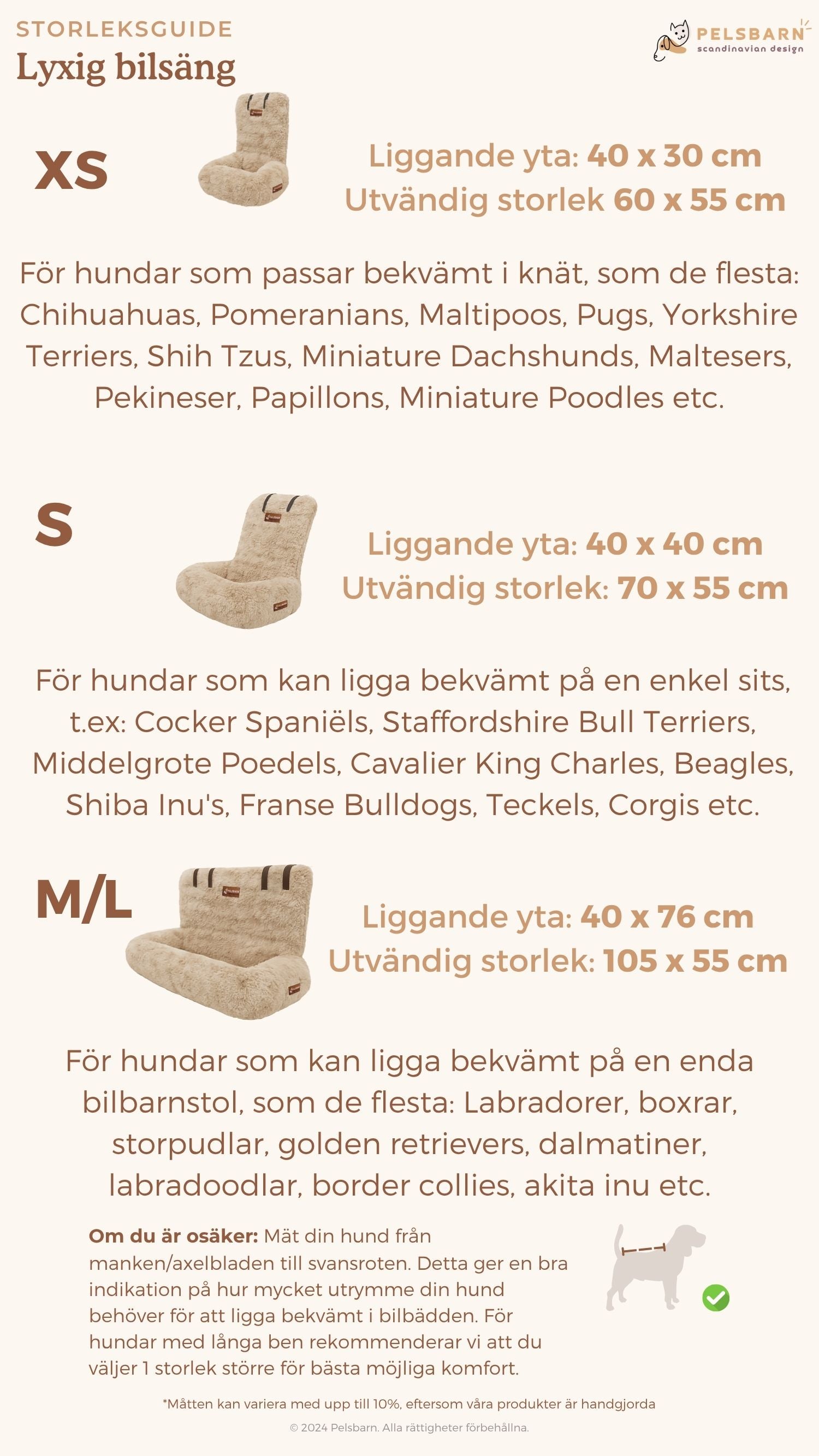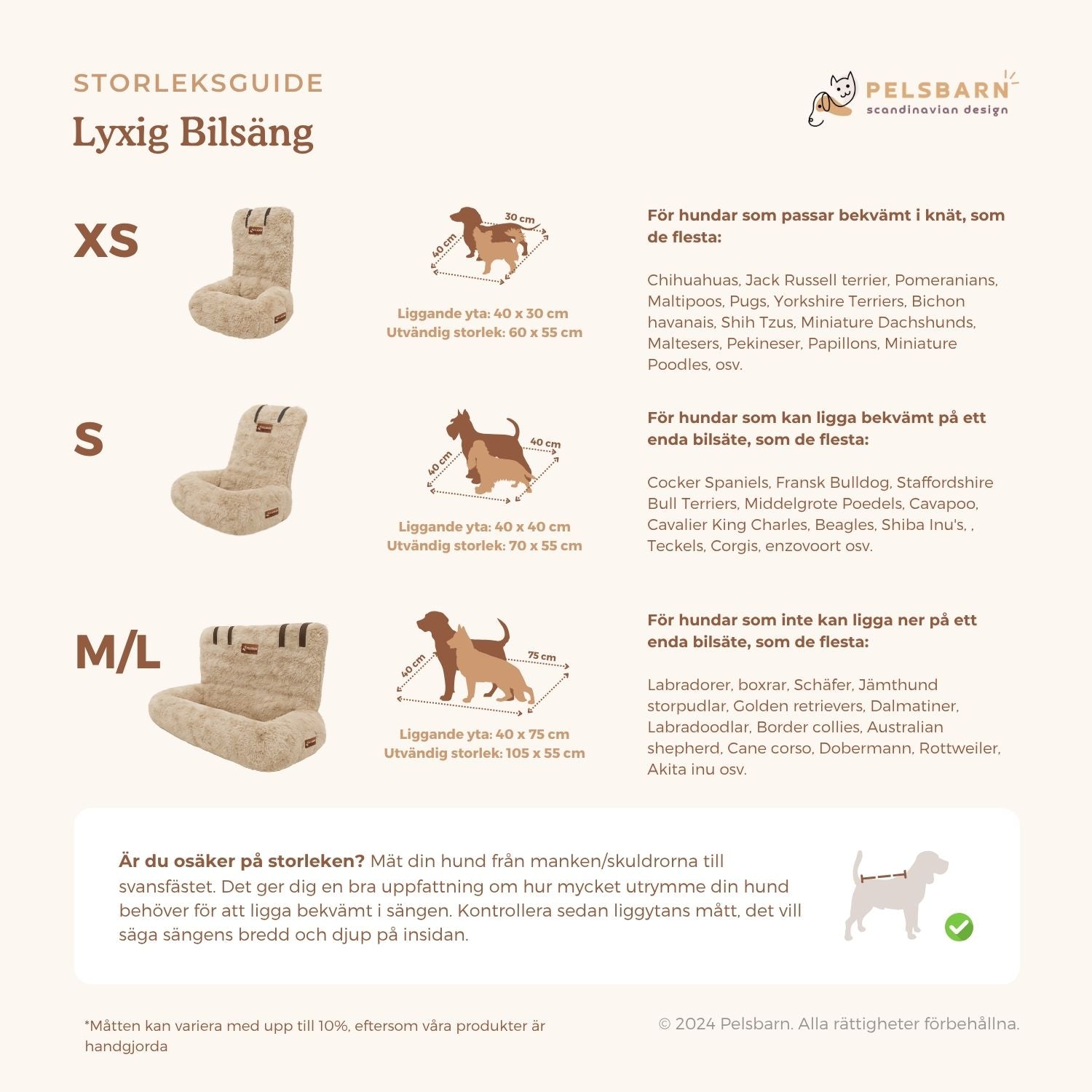 Vår Pelsbarn lyxig bilsäng finns i tre olika storlekar: XS, S och M/L