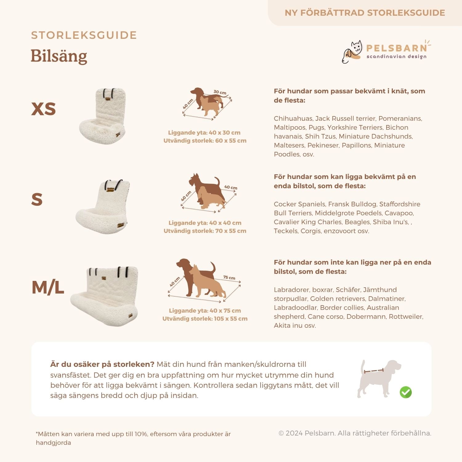 Ja, säkerhet är vår prioritet. Vår bilsäng har funktioner för att fästa den i bilsätet, tillsammans med fästen för hundens sele eller säkerhetsbälte. Detta säkerställer att din vovve sitter säkert och bekvämt under hela resan.